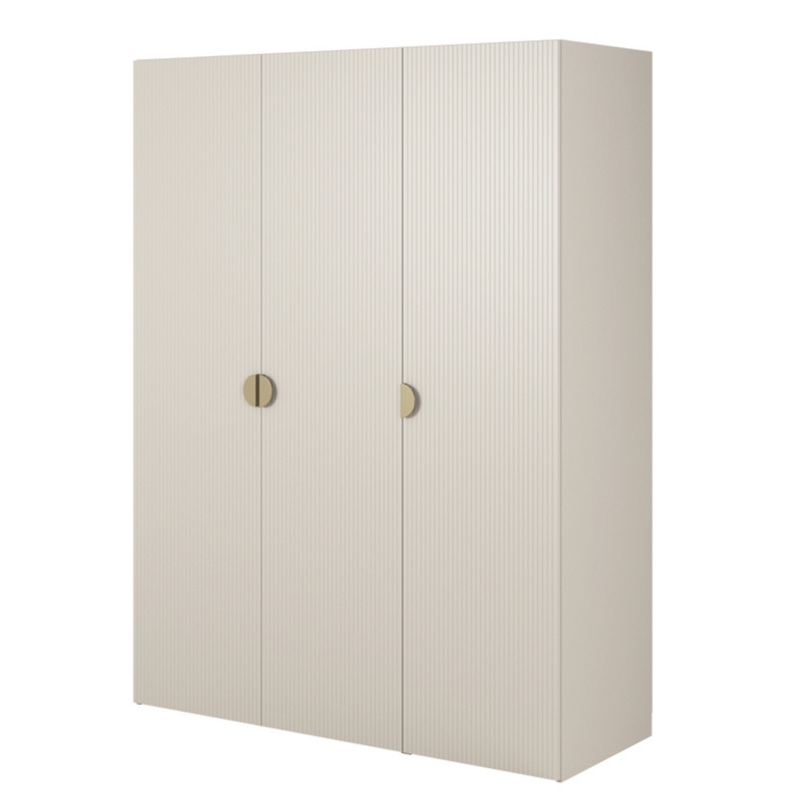 MOON Trsdurvju skapis ir elegants un stilgs risinjums, kas bs lieliska alternatva garderobei. T minimlistiskais dizains lieliski iederas gan modern, gan klasisk interjer. Viss korpuss ir izgatavots noaugstas kvalittes lamintas skaidu pltnes, kas garant izturbu un viegli trmu. Garderobes fasdm irsmalkas lameles, kas pieir tai smalku tekstru un interesantu vizulo efektu. Priekpus irzeltains, pusapaas rokturis, kas izgatavots no matta trauda, kas pieir izsmalcintu izskatu un kontrast ar mattu korpusu. Atkarb no jsu vajadzbm varat izvlties jebkuru interjera konfigurciju, lai pielgotos dadiem aprba priekmetiem.Sliede auj pakrt drbes,lai ts btu lab stvokl, savukrt augjais plaukts auj uzglabt retk lietotus aprbus vai aksesurus.Konteiners ar divm atvilktnmnodroina papildu vietu nelielu aksesuru vai apakveas glabanai, kas nodroina lielku krtbu garderob.Kolonna ar plauktiemauj efektvi irot aprbu un aksesurus. Klasisk krsa pieir telpai eleganci un stilu, bet pieklusints krsas lieliski harmonizjas ar dadiem dekoratviem stiliem. Skapis ir ne tikai funkcionls interjera elements, bet ar esttisks akcents, kas telp var ienest msdienguma un klases pieskrienu. Komplekt irdivi rokturi – zelta un melna,lai js vartu izlemt, kur no tiem labk atbilst jsu interjeram. Varat ar maint rokturi, mainot interjera dizainu, nenomainot mbeles.