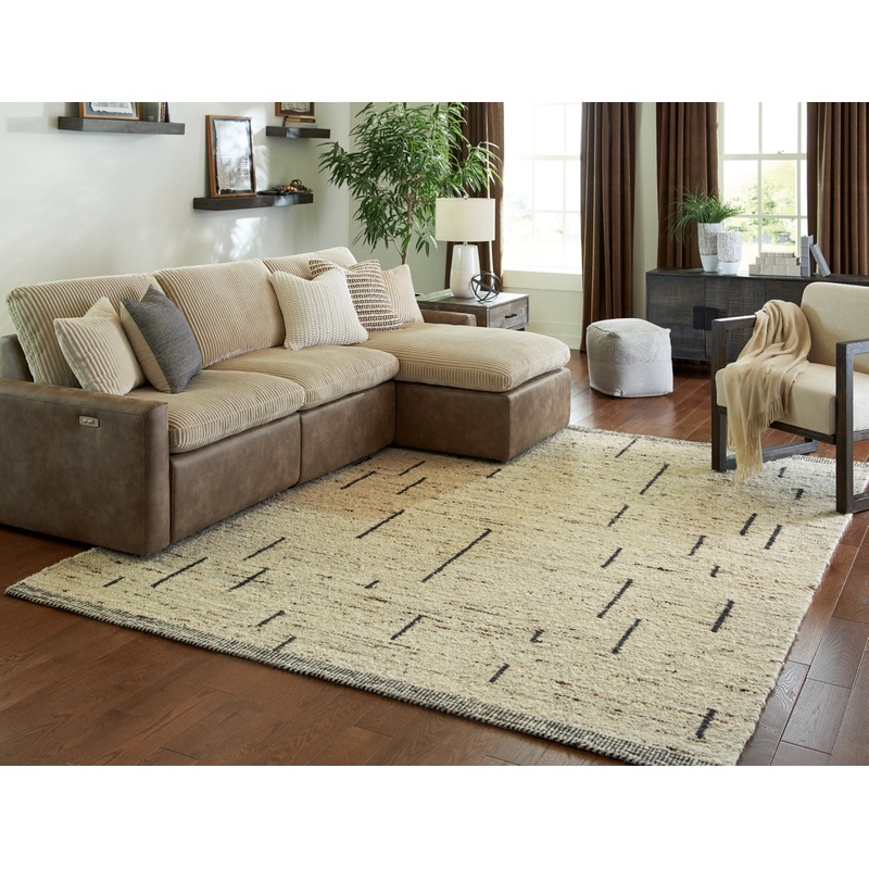 sku : R405291InformationPolish off your decor with the subtle stylings of this rug. Its abstract linear design is casually cool in shades of beige, black, brown and gray. The rug's wool construction softens your space and keeps things cozy underfoot.Featur