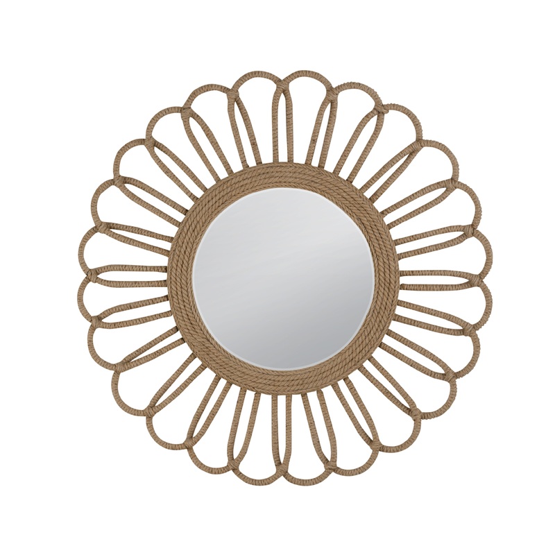 The Naples Wall Mirror showcases rope loops overlapping to form a distinctive daisy-like shape, adding a charming touch to any space. With its coastal and boho vibes, this round mirror effortlessly enhances the ambiance of your room. Its brown hue adds a n