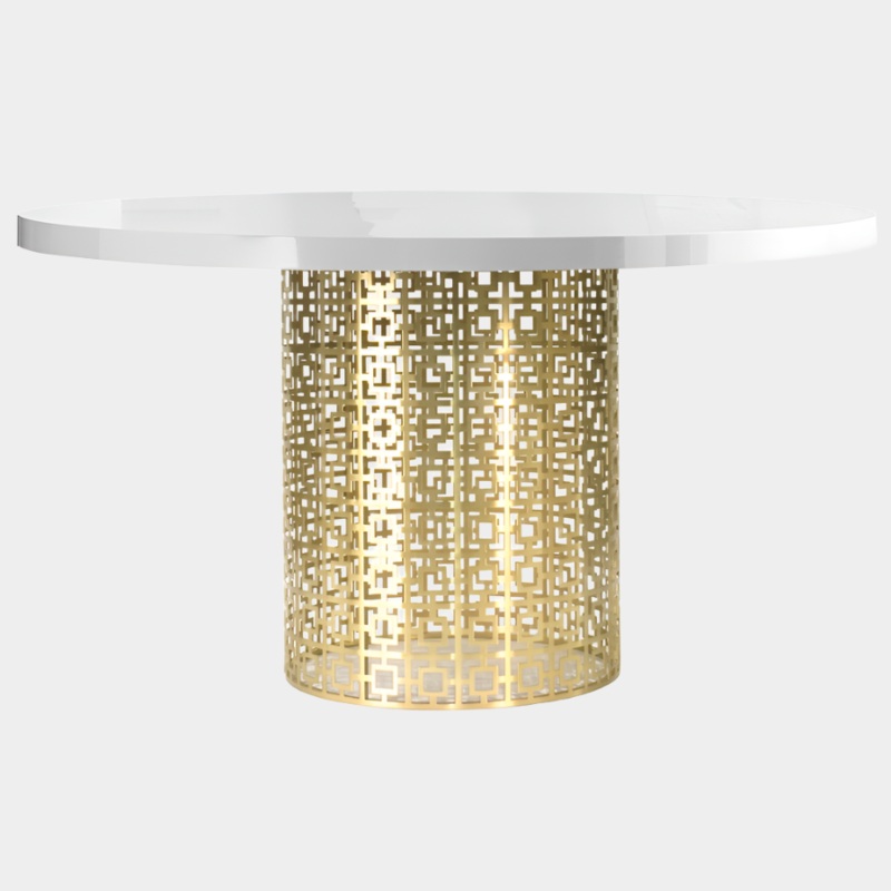Elegant marble dining table with base in gold.Dimensions 29"H x 56" D