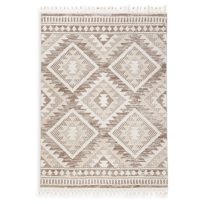 Todays casual, carefree aesthetics are reflected in this rug. For those with an inclination for neutral hues and an easy-breezy vibe, the diamond design and tasseled edge offer a conventional take on modern boho. This rug harmonizes well with natural greenery, simple architectural forms and inviting accents.