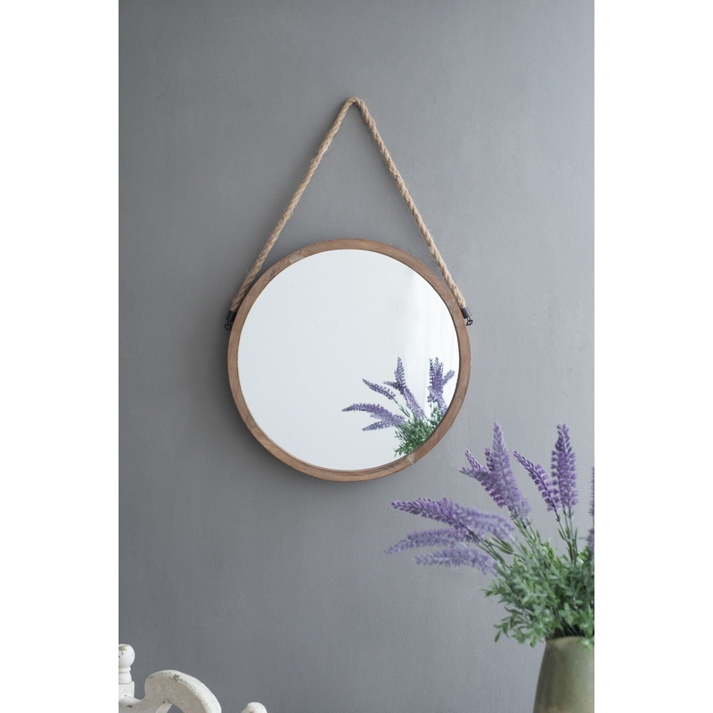 Coastal Design: This round wood mirror with a jute handle offers a charming coastal aesthetic, resembling a porthole. Functional Decor: Acts as a perfect accent for home or office, reflecting light to make rooms feel more open. Material Composition: Made f
