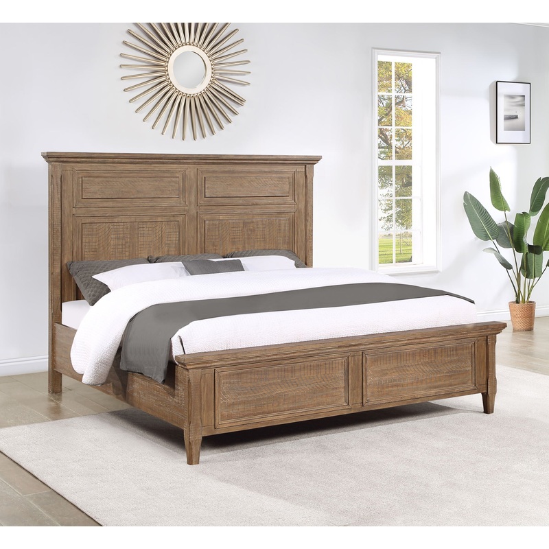 Experience the perfect blend of rustic design and refined style with the Panel Bed from the Riverdale collection. With a beveled headboard and picture frame footboard, this bed exudes rustic charm and modern elegance, enhanced by a distressed finish that a