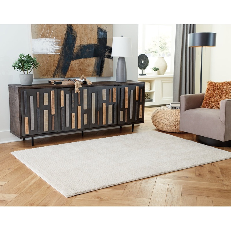 sku : R404552InformationThis rug offers a clean, modern touch to your home. Featuring a machine woven high-low stripe design in cream hues, it provides simple, plush comfort and a neutral design that fits most decors.FeaturesMade of polyesterMachine woven