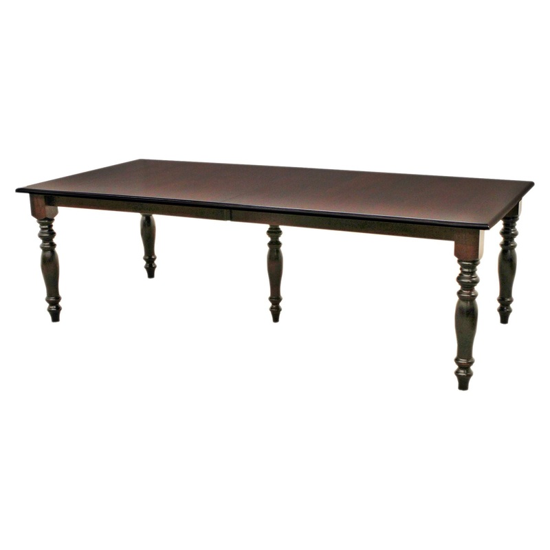The Shreveport Extending Dining Table features a 1″ thick, solid wood top made with a handrail edge. The Amish dining table has self-storing leaves and it extends easily with gear slides. The grain runs lengthwise on a table without leaves. The grain runs widthwise on a table with leaves. For more info, contact us at .