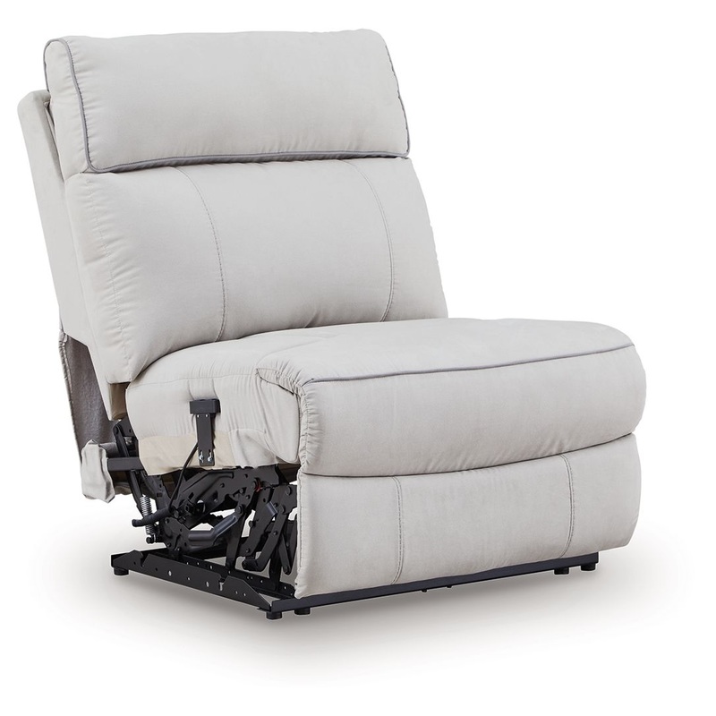 This power armless recliner is made with polyester upholstery. It pairs with other items in the series to make a modular sectional.Product FeaturesCompatible with other 98802 items, sold separatelySocial Pointe - Pearl / Ash - Power Armless Recler With Adj