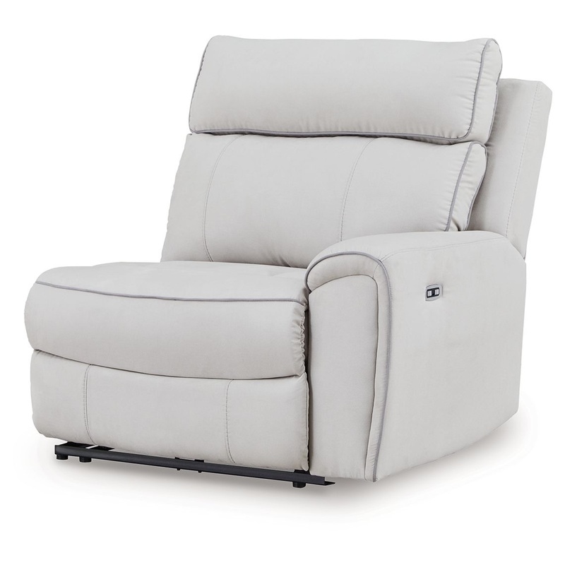 This right-arm facing power recliner is made with polyester upholstery. It pairs with other items in the series to make a modular sectional.
