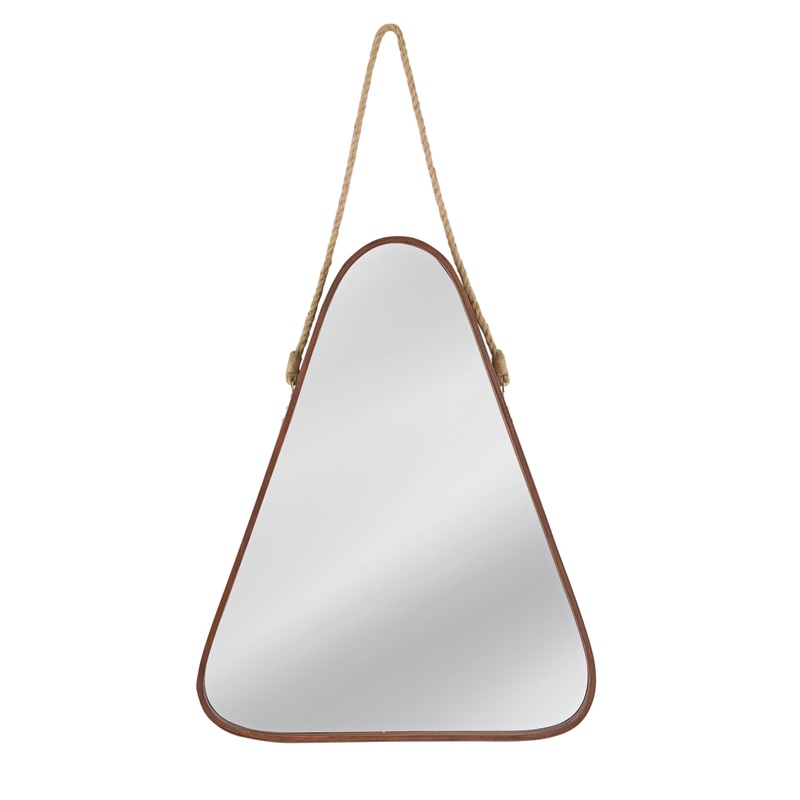 The Standish Wall Mirror offers a unique reuleaux triangle shape adorned with rustic rope detailing, adding a charming farmhouse touch to any room. Crafted with quality materials and attention to detail, this mirror effortlessly enhances your space with it