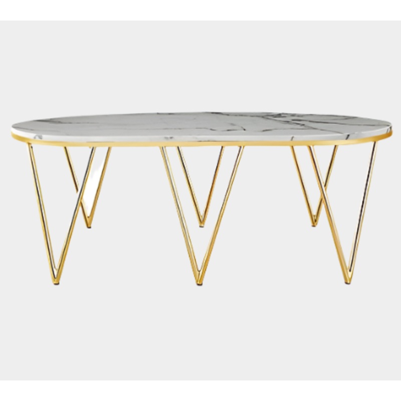 Faux marble top in oval shape with metal legs, this coffee table is suitable as a centrepiece.