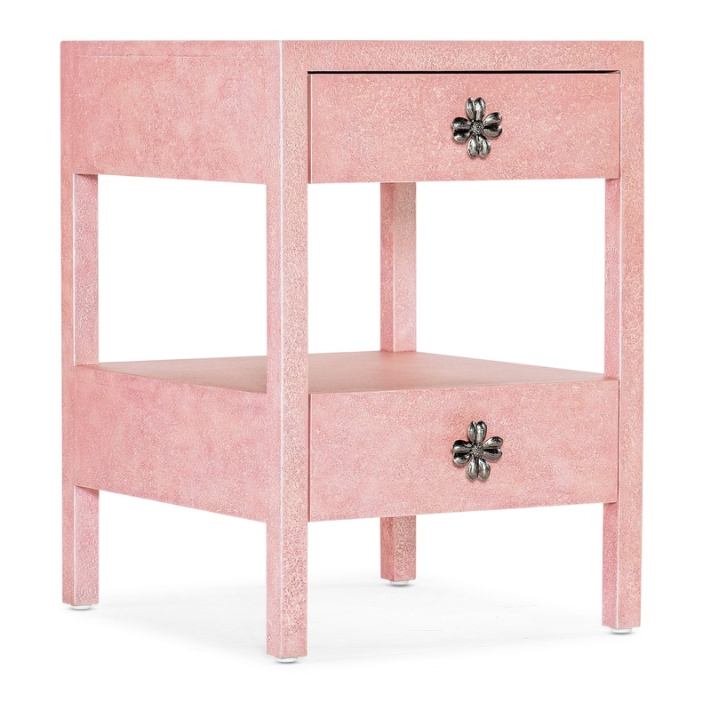 Part of the curated Susan G. Komen Collection honoring the spirit and resilience of those diagnosed with breast cancer, the Courage Accent Table features a signature textured pink finish. The antique pewter-colored floral motif hardware adds a touch of glam. The two drawers are lined with elegant pink interiors, and theres a handy open storage space above the bottom drawer. A portion of the proceeds of each piece sold goes to benefit breast cancer research and awareness.