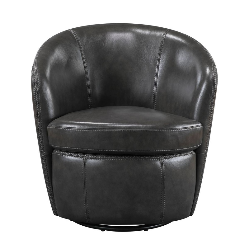 Experience the epitome of luxury and functionality with this top grain leather swivel barrel chair. Featuring a sturdy solid wood and plywood frame with a smooth metal swivel base, this chair offers both durability and effortless movement. The dacron wrapped high-density foam cushions provide exceptional comfort, while the 100% top grain leather upholstery adds a touch of timeless elegance. The removable seat cushion cover with zipper makes cleaning and maintenance a breeze. With a 360-degree swivel and no assembly required, this chair is perfect for enhancing your living room, office, or reading nook with a blend of style and practicality.
