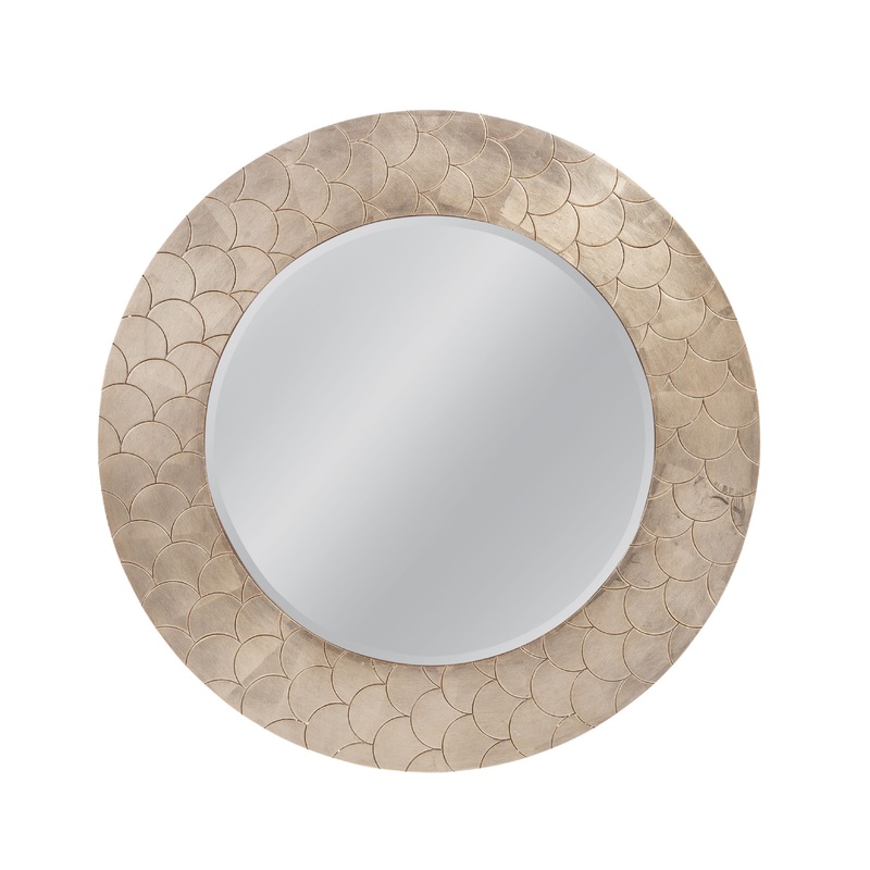 The Tetra Wall Mirror features a round, elegant coastal design with a unique scale-like printed frame finished in a soft champagne tone. This beautiful mirror brings a touch of coastal charm while offering a sophisticated and modern aesthetic. The delicate texture of the frame adds depth and visual interest, making it a standout piece in any room. The Tetra Wall Mirror is a versatile and stylish addition, perfect for brightening up your space with a refined, beach-inspired touch.
