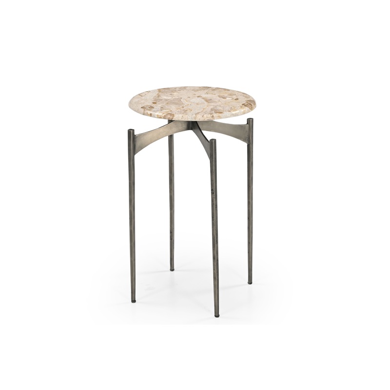 Thea – Accent Table – Italian Crema Marble / Nickel Iron