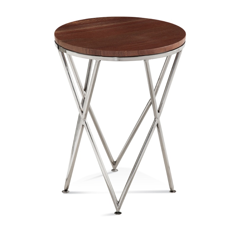 The Thiago Accent Table features a modern glam style with the chrome finishes and geometric table base. The round table top is constructed of real red marble. The chrome finished frame features modern angular style details. The marble stone is a product of nature and is completely unique. The natural material is subject to variations in characteristics such as veining, color, pattern and mineral deposits.