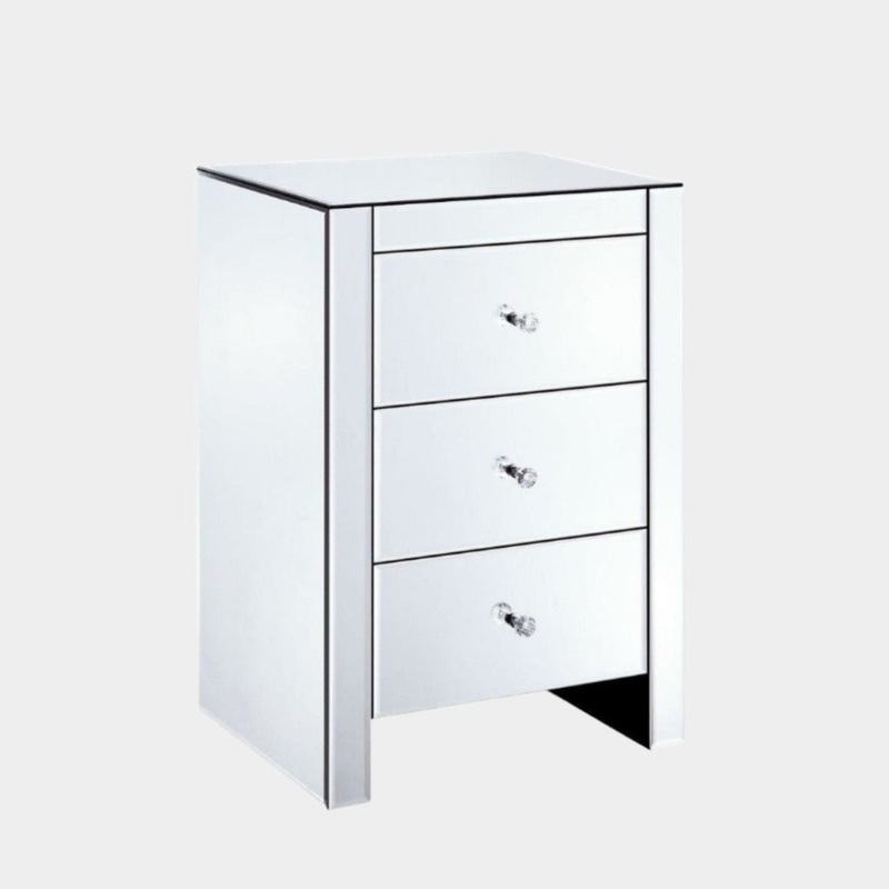 Stylish mirrored nightstand with triple drawers.