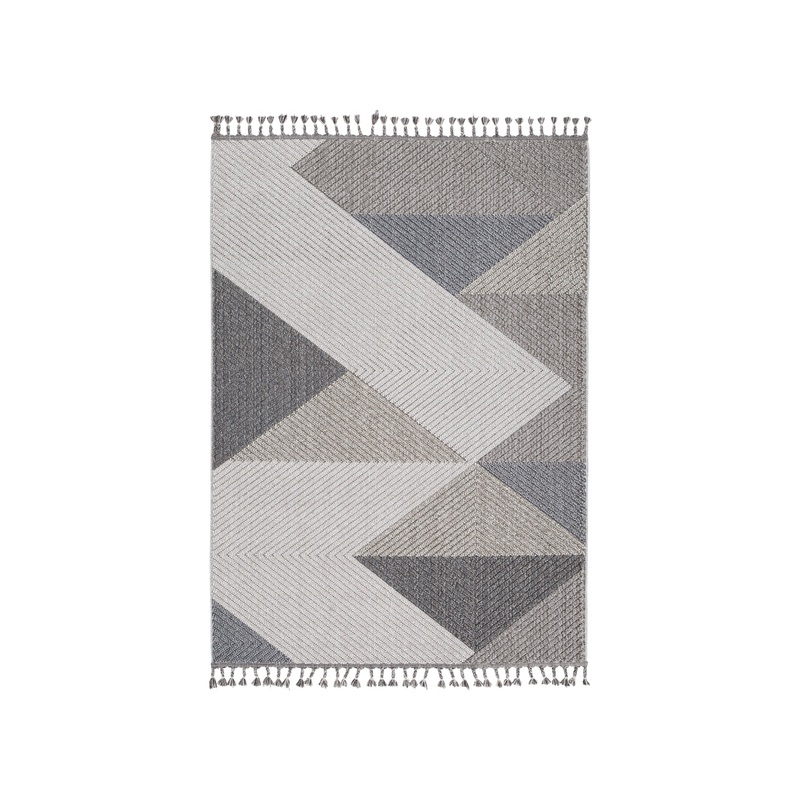 Toksook Medium Rug 5'3" 7'11"Update your space with the Toksook rugs eye-catching geometric design, featuring cream, gray, taupe, and a pop of muted blue. The braided tassel edge adds a handcrafted finish, giving this piece modern flair with a cozy twist.6