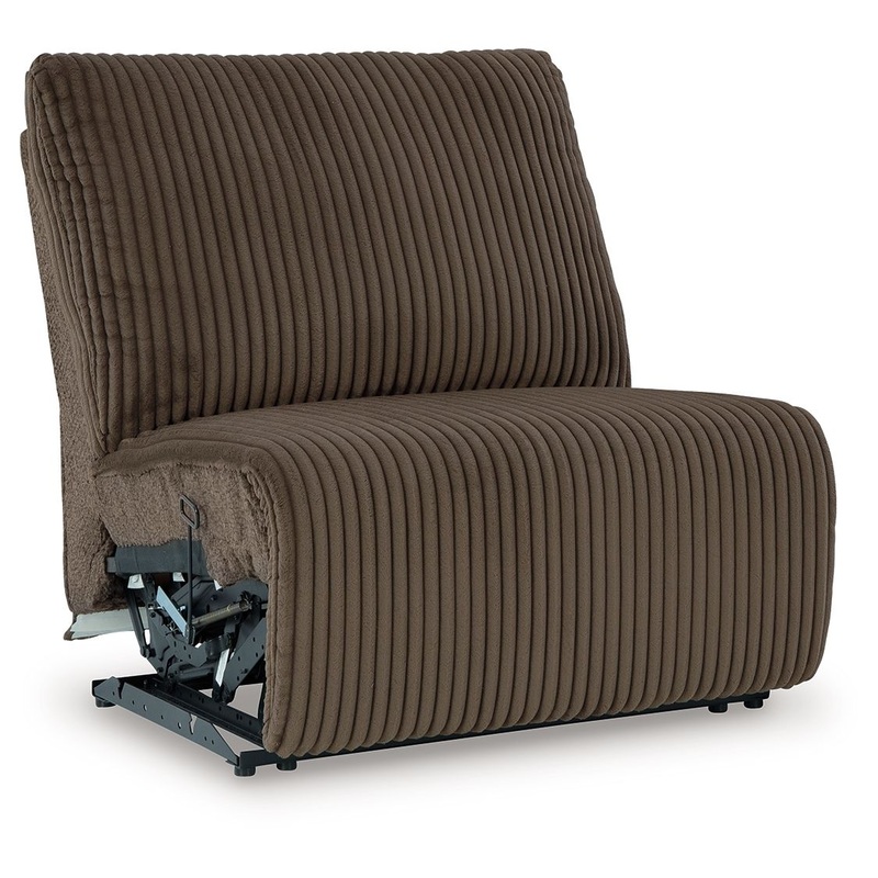 This armless recliner is made with polyester upholstery. Pairs with other items in the series to make a sectional.