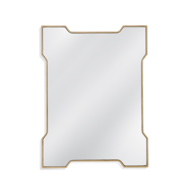 The Park Place Wall Mirror boasts a rectangular shape with a geometric style frame, adding a touch of modern elegance to any space with its gold finish.Crafted with attention to detail, this mirror effortlessly blends modern and traditionall aesthetics, ma
