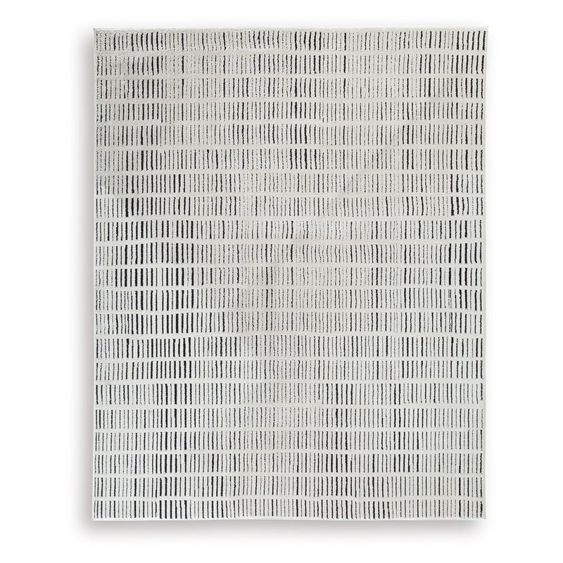 This area rug delivers a clean, modern touch to your home. Its striking stripe design provides plush comfort underfoot, while neutral hues make it a welcome addition anywhere and everywhere.Turinwith - Ivory / Black - Large Rug94.0"W x 118.0"D x 0.63"H - 2