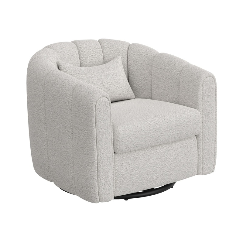 Wooden Frame & Metal Base, 360 Degree Swivel Glider Accent Chair. Experience timeless elegance in your space with our swivel Viera armchair, a piece of furniture designed to transform the ambiance of any room.Viera - Armchair - Light Cream37.75"W x 34.25"D