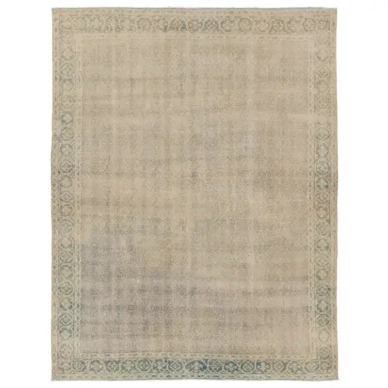 Atrue heirloom rediscovered, this hand-knotted wool runner carries the whispers of time in its intricate all-over border design. Meticulouslyhand-restored to preserve its soul, the warm tan hue glows with understated elegance, while the 100% wool construction promises generations of enduring beauty. More than a rug its afragment of history, ready to weave its legacy into your home.