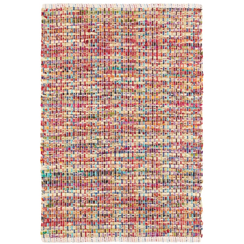 A kaleidoscope of repurposed cotton fabrics, stripped and woven with a white weft brings happy home with this everyday, everywhere, modern take on a rag rug.