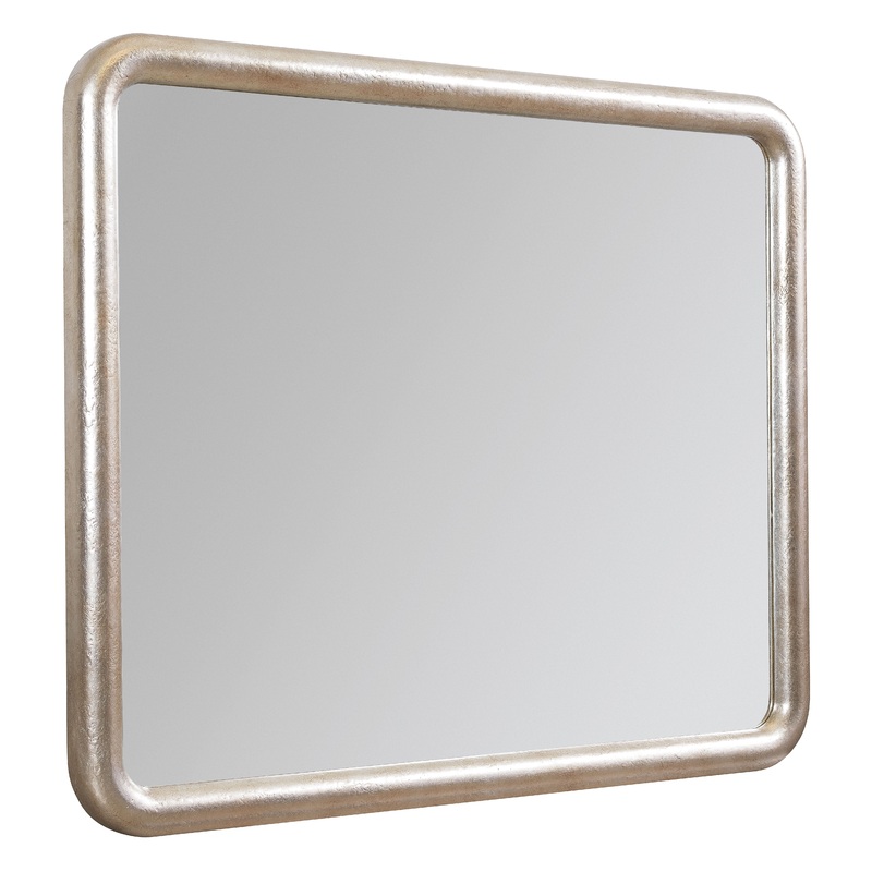 The Westwood Mirror adds a refined, modern touch to any bedroom. With a Venetian Dawn silver-leaf finished frame, this rectangle-shaped mirror is crafted with 1-inch beveled mirror glass, exuding quiet luxury. The Polished Limestone finish on quartered oak
