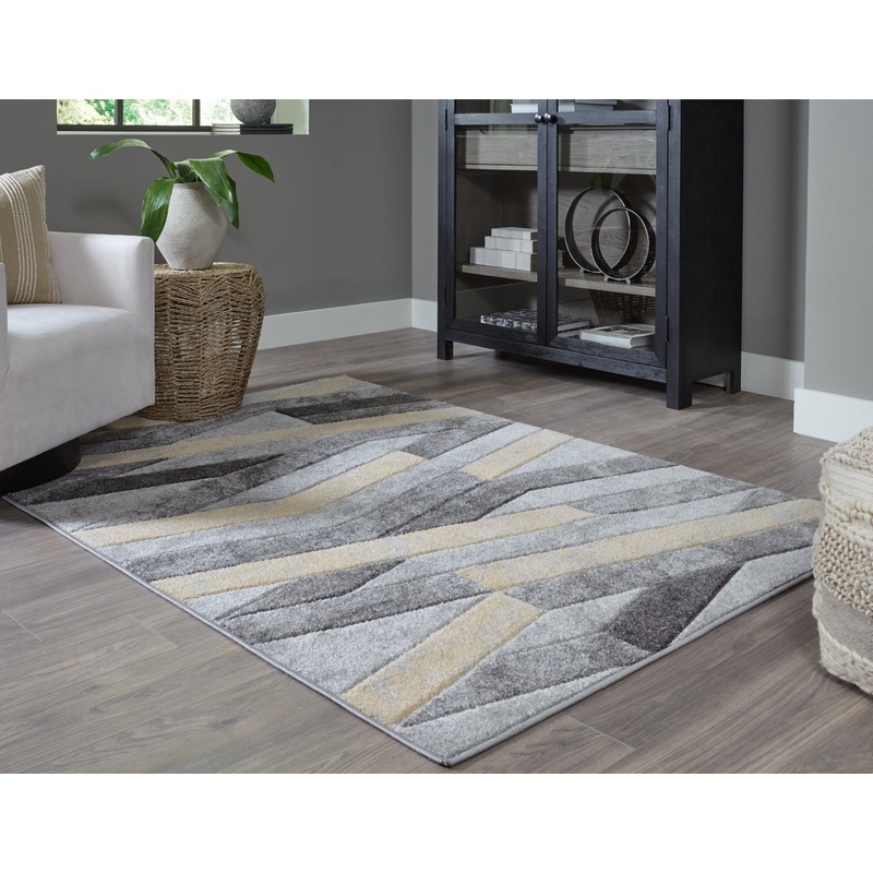 sku : R404962InformationThe modern design of this area rug is sure to make a bold statement in any room. By alternating the pattern flow from low to high, the weavers have created a work of art alive with texture. Shades of beige and gray are blended to pr