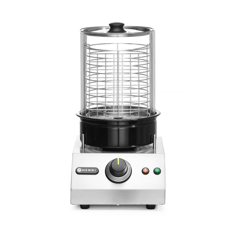 Fr einfaches Aufwrmen und Warmhalten von HotDog-Wrstchen, Edelstahlgehuse, Wrstchenbehlter aus Glas, verstrkt mit eloxiertem Aluminium. Leistung stufenlos regelbar.