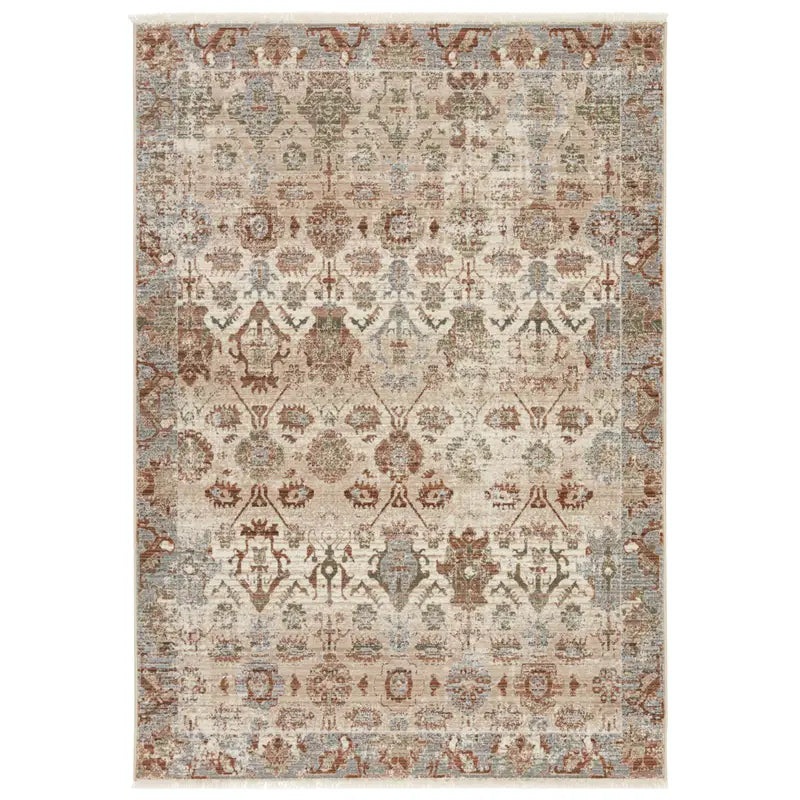 Elevate your space with the Zefira Luana Rug, where vintage Turkish influence meets warm, modern tones. Its elegantly distressed lattice pattern blends beige, tan, green, and rust with subtle hints of cool gray perfect for adding character and softness to any room. Finished with cotton fringe for artisanal texture, this plush polypropylene rug is as durable as it is stylish.