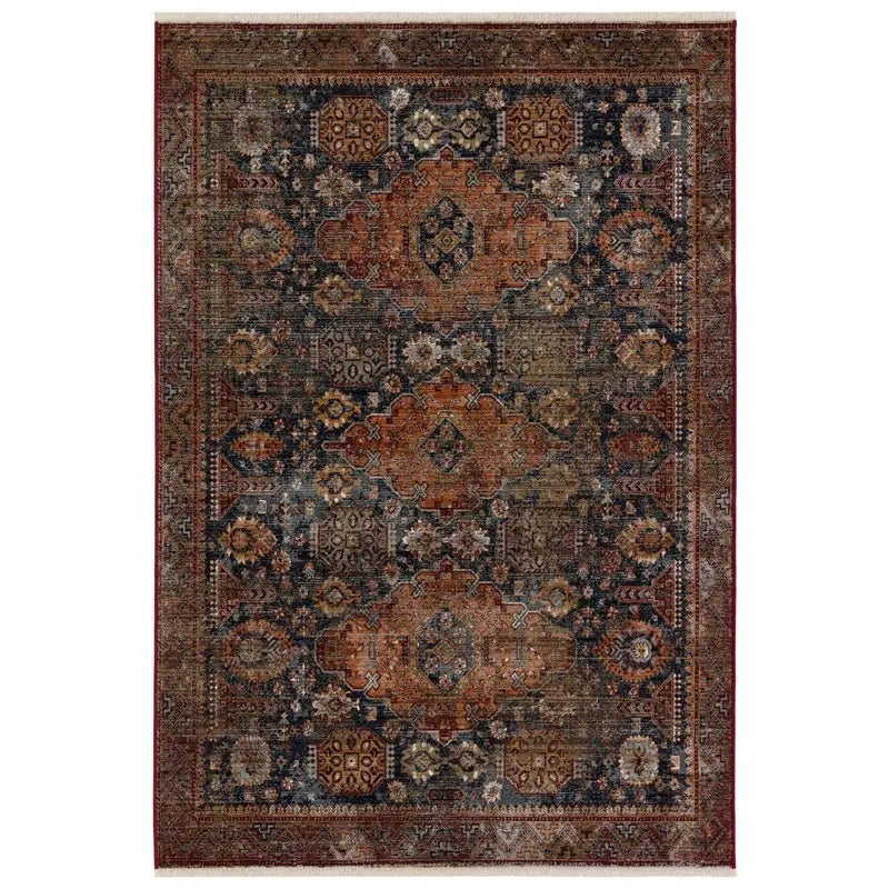 Drawing inspiration from the timeless charm of sun-drenched Turkish aesthetics, the Zefira collection reimagines classic motifs with a contemporary twist, featuring bold, saturated hues for a modern touch. The standout Razia rug presents a beautifully distressed traditional pattern, artfully woven in a rich palette of black, navy, gold, orange, red, and gray. Crafted with precision on a power loom, this rug combines plush, durable polypropylene pile with elegant cotton fringe detailing a nod to hand-knotted craftsmanship adding depth and texture for a luxuriously layered look.